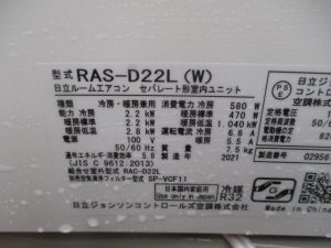 H561 2021年日立スタンダード6畳エアコン 標準工事込み46000円税込 本体保障1年 工事保証3年
