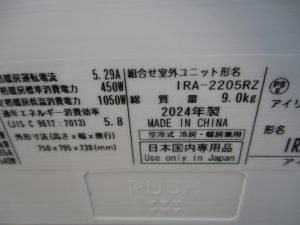 i10 アイリスオーヤマ6畳エアコン標準工事込み48000円 本体保証半年 工事保証3年